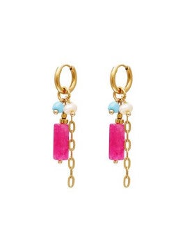Oorbellen gekleurd ketting - roze