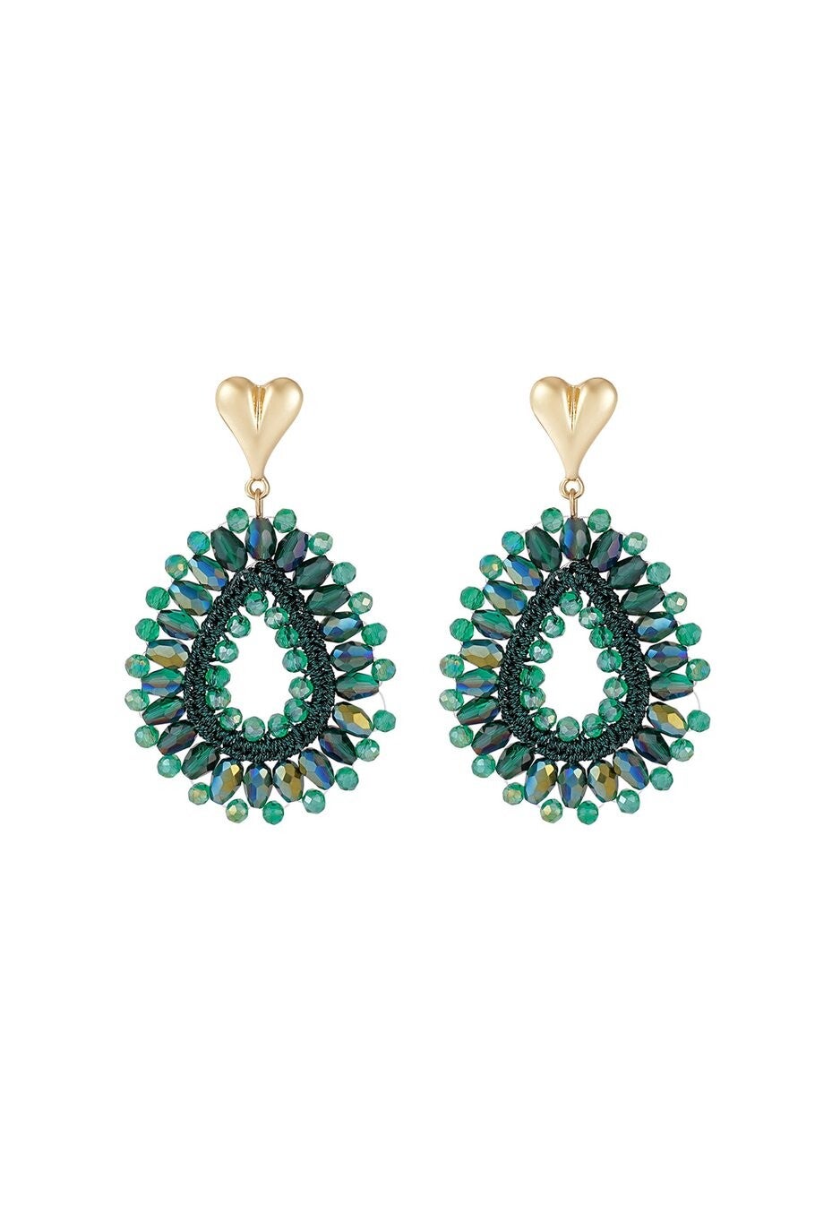 Oorbellen beaded love - green
